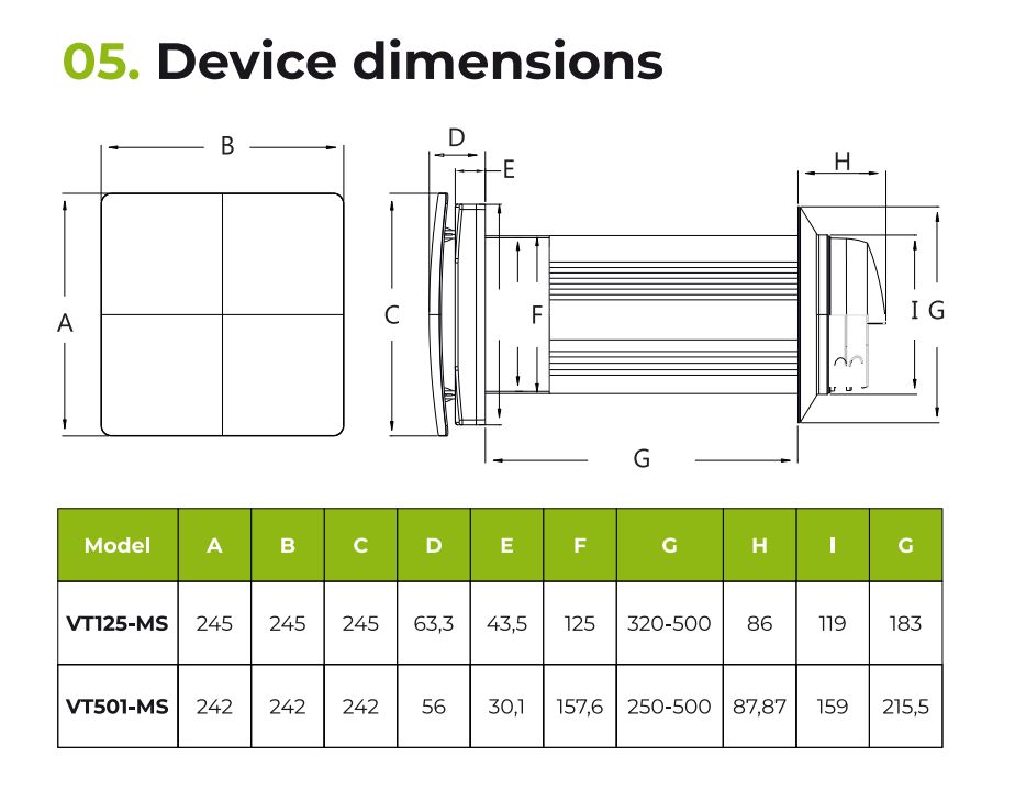 VT 501-MS 160 mm III 7 W 2200 (obr/min) 60 m3/h 33 dB
